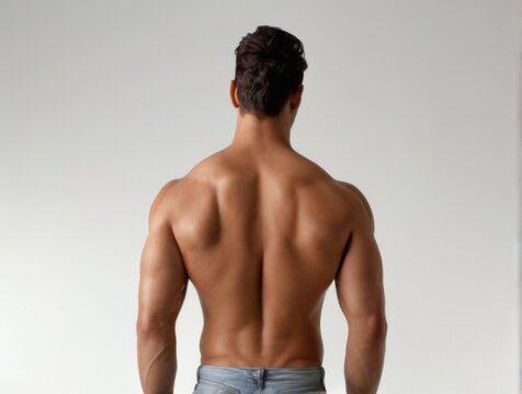 A close-up view of the back of a man's torso. Suitable for fitness, health, or anatomy-related projects