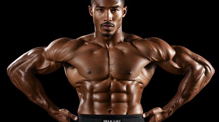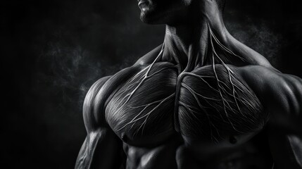 Muscular Man Displaying His Well-Defined Physique Against a Black Background