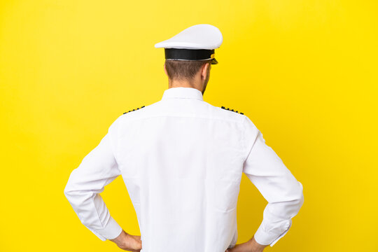 Back view on passenger aircraft standing near airport terminal loading passengers and preparing to fly