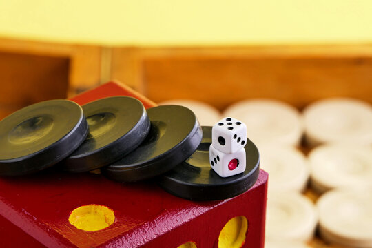Traditional Board and Playing Backgammon Outdoors