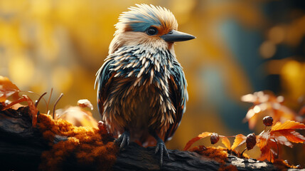 Vibrant cartoon cartoon chicken hatching from eggshell with cheerful expression