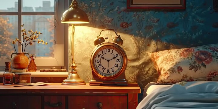 Sunlit minimalist wall clock casting window shadow with soft morning light