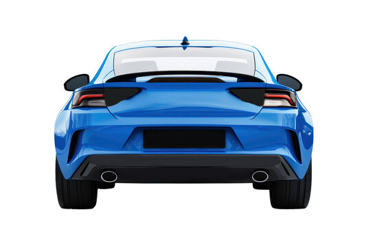 Blue car rear view with no logo isolated on a white background, showcasing a sleek design and modern features ideal for automotive enthusiasts and designers