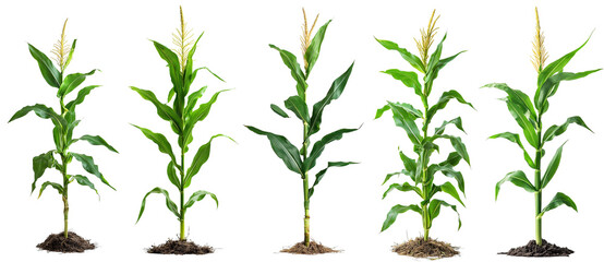 Corn plants at various growth stages from seedling to maturity agriculture farming transparent background