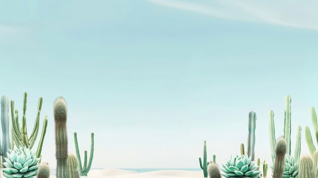 Digital 3d cactus border plant abstract graphic poster web page PPT background. Nature and botany concept for design, invitations, and print. wallpaper with copy space