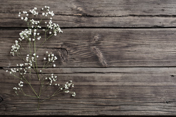 gypsophila flowers on old wooden background