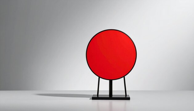 Bright red circle painted behind crumbling white wall, damaged concrete surface texture