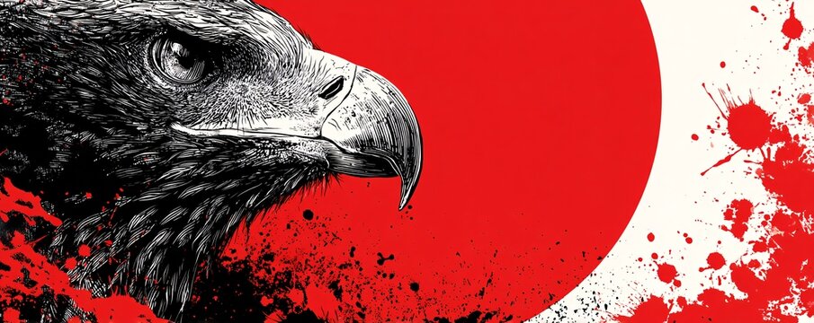 The Japanese national flag featuring a red circle on a white field, symbolizing the sun, on transparent background.