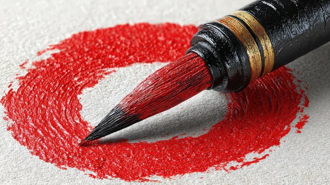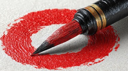 Red circle brush stroke marker presses against paper creating a vibrant mark for artists and crafters to use in creative projects and designs