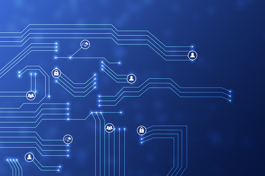 Futuristic digital network with technology symbols