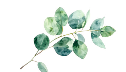 Watercolor illustration of eucalyptus leaves and branches against a transparent background