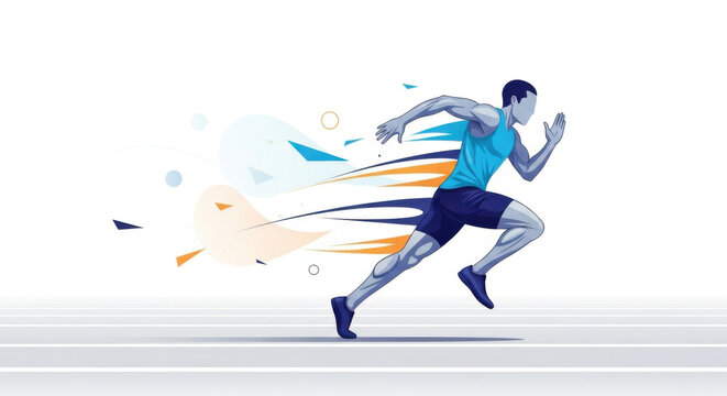 Male Sprinter Running on Track with Dynamic Motion Trails