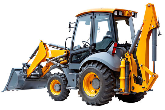 Yellow Backhoe Loader Tractor on White Background