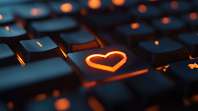 Dark keyboard closeup shines. Buttons gleam. Useful for tech marketing, web design. Concept: Innovation, technology, digital, future.