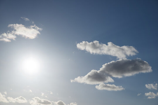 cloudscape with blue sky and sun for backgrounds