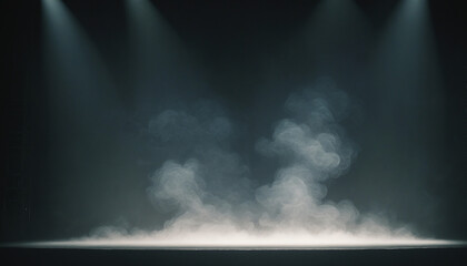 Enigmatic black background illuminated by surreal spotlight and mystical haze