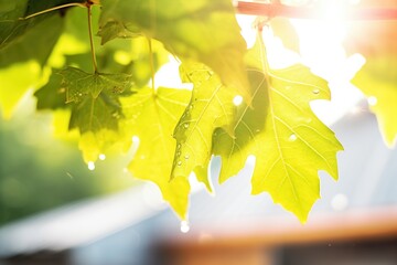 grape leaves with sunlight piercing through