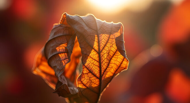 Backlit green leaf showing intricate vein network, translucent venation, sunburst glow
