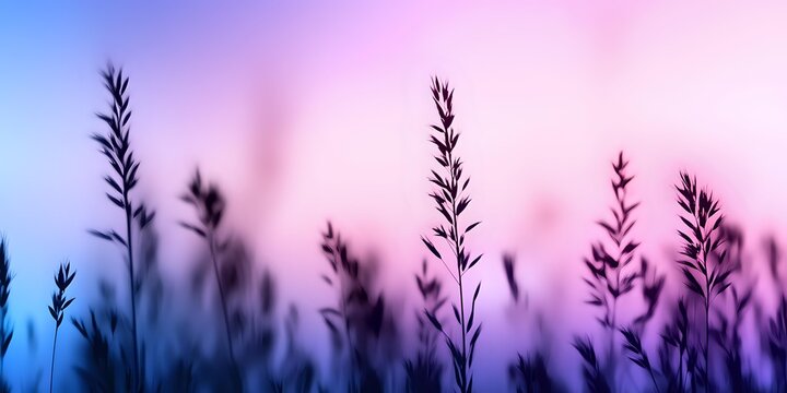 Ethereal backlit meadow grasses swaying in misty dawn glow with feathery silhouettes