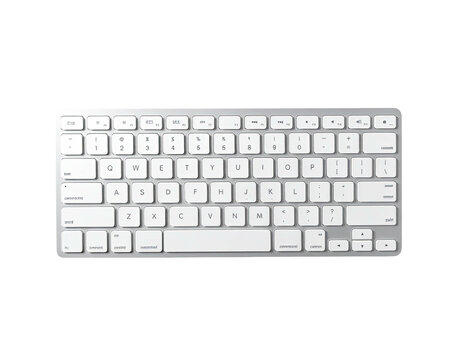 A close-up shot of a mechanical keyboard with backlit keys, on a white background