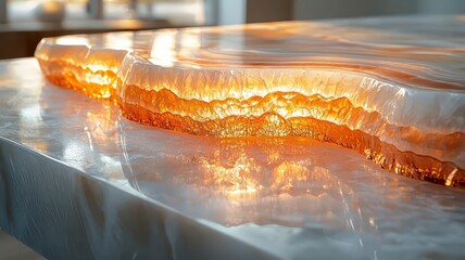 Elegant backlit agate slice showcasing warm amber hues and intricate patterns, perfect for luxury decor and design inspiration.
