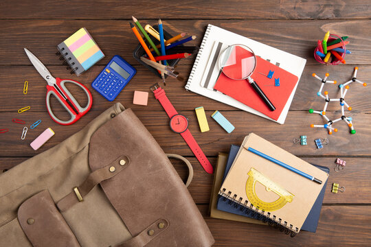 colored pencils and school bag clock for school supplies