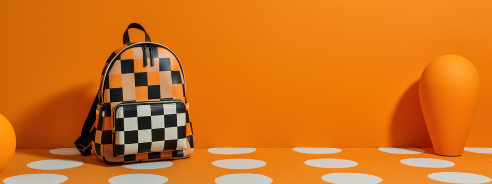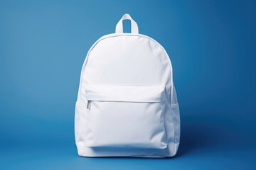 a white backpack with brown trim and a marble pattern, no background, transparent