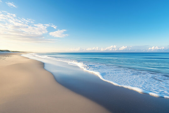 Immaculate sandy shoreline, flat and luminous beach