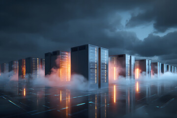 Futuristic Cloud Data Center Concept Suspended in a Dreamy Sky