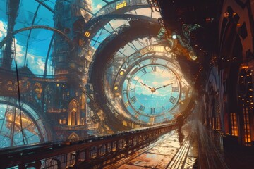 Conceptual illustration of a time machine bridging historical moments and future possibilities, highlighting the pivotal role of the past in shaping the future