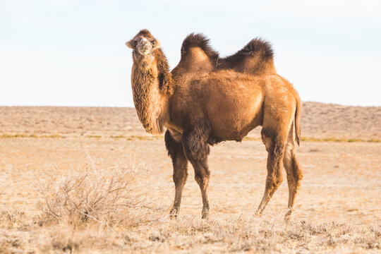 The Bactrian camel (Camelus bactrianus) is a large, even-toed ungulate native to the steppes of Mongolia. The Bactrian camel has two humps on its back in winter season