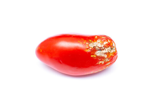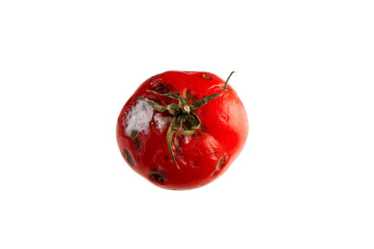 rotten tomatoes isolated on white. Moldy and spoiled tomato. vegetable with a disease
