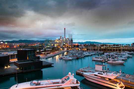 The decommissioned thermal power station at Sand Adria near Barcelona at sunset
