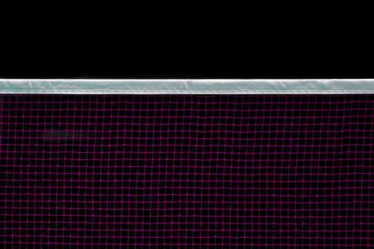 Badminton net indoor on badminton court, closeup view of badminton net with black background
