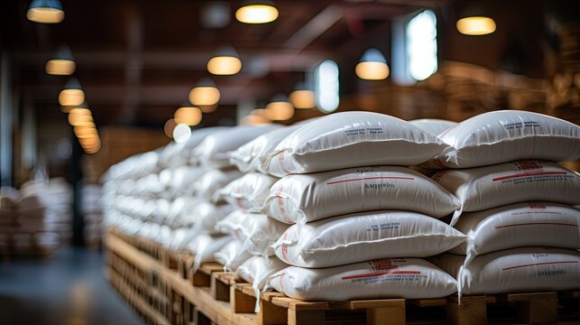 From above crop unrecognizable male worker demonstrating dry germinated cereal above bag on floor in brewery