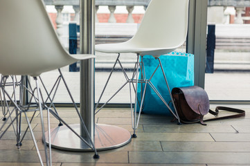 Closeup of young woman is stealing red shoes in store, shop, boutique at shopping center. Girl is hiding unpaid good in handbag. Seller, assistant caught thief on hot. Shoplifting concept.