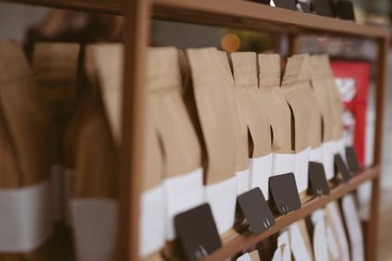 Packaged coffee bags in cafe