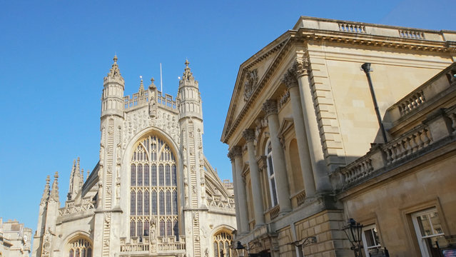 The picture of the entrance of bath abbey the gothic ancient roman beautiful and historic church in bah united kingdom or England