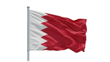 Bahrain national flag with red and white serrated design flying against clear blue sky