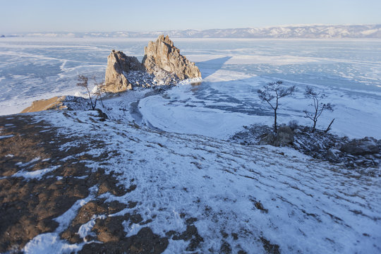Rock Shamanka. Cape Burhan. Lake Baikal, winter landscape
