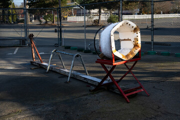 Aerial view, truck vehicles to pipe unclogging and bailer in floods , professional service company.