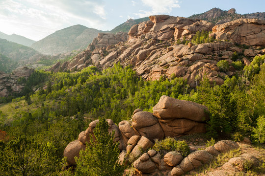 Granite rock formations fill a valley in Lost Creek Wilderness