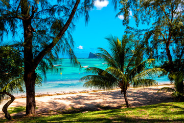 BAIN BOEUF Mauriutius. Beautiful beach in northern Mauritius. Coin de Mire, white sand beach among Palm trees