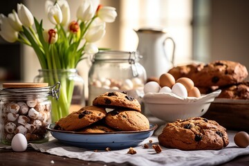 Homely Rustic easter Bakery Spread with Pastries