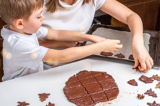 Upper body shot of an elderly lady and her grandchild baking cookies together in a cozy kitchen.. AI generated.