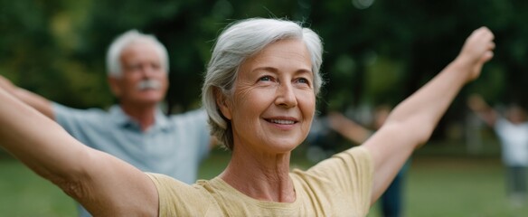 Seniors dance with wellness like leaves in the breeze during gentle exercises outdoors