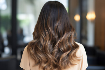 A beautiful representation of the balayage technique, highlighting natural gradients in hair color, expertly blending dark roots with lighter ends for a sophisticated look.