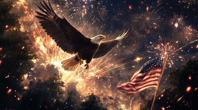 A cartoon eagle wearing golden sunglasses, soaring with outstretched wings in the sky.