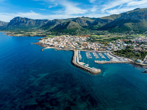 Spain, Balearic Islands, Colonia de Sant Pere, Aerial view of coastal town at northeast coast of Majorca