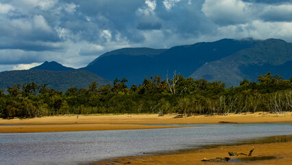 Beautiful day on Balgal Beach in Queensland, Australia. Idyllic tropical beach with yellow sand near Townsville.